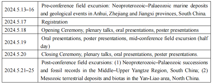 Participants will visit several classic stratigraphic sections and biotas of Neoproterozoic and Palaeozoic in the border area of Anhui, Zhejiang and Jiangxi provinces, including the Lantian biota in Anhui Province, the Duibian section (GSSP for the Jiangshanian Stage, Cambrian) in Jiangshan City, Huangnitang section (GSSP for the Darriwilian Stage, Ordovician) in Changshan County, Lijia biota in Jiande City, and the Meishan section (GSSPs for both the Changxingian Stage of Permian, and the Permian-Triassic Boundary) in Changxing County, Zhejiang Province, etc